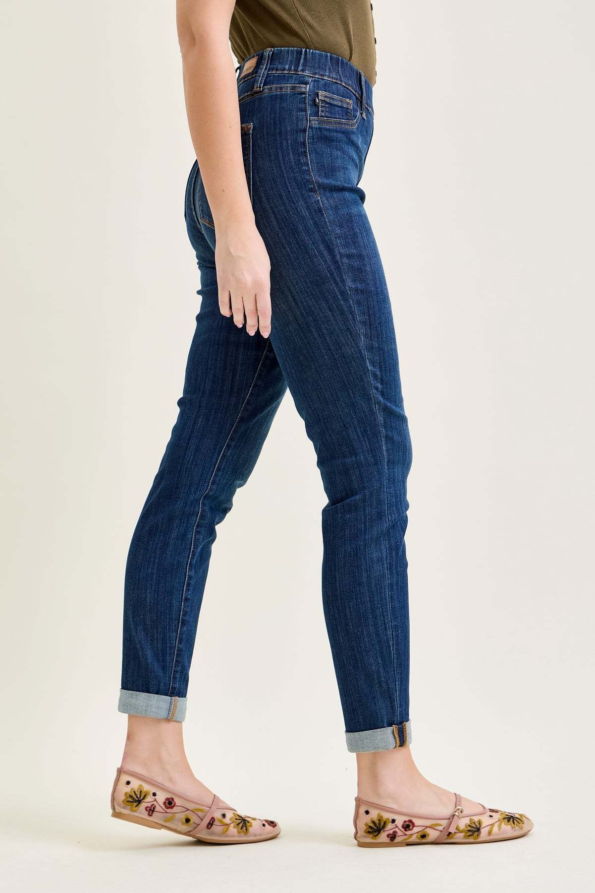 Hailey High Rise Pull On Double Cuffed Slim Jeans