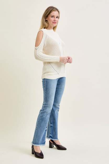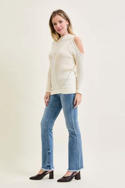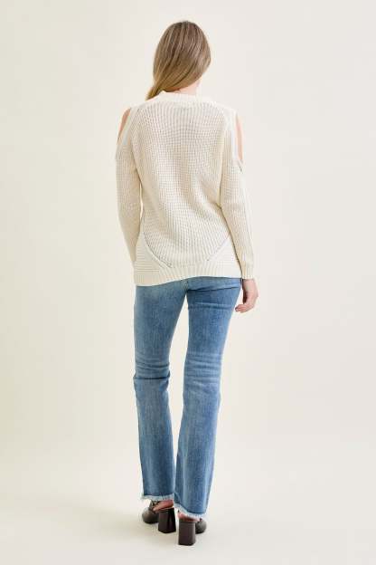 Cold Shoulder Cable Pullover White Sweater