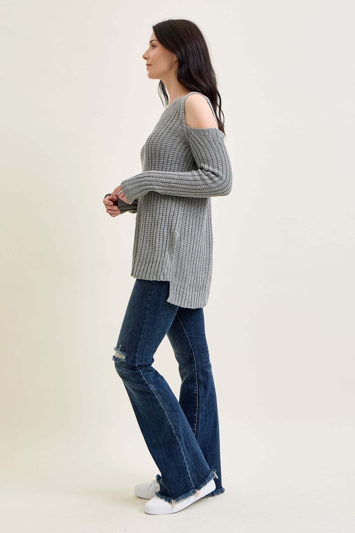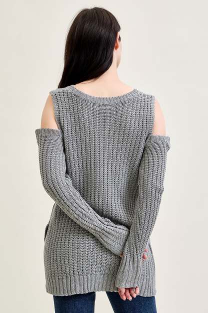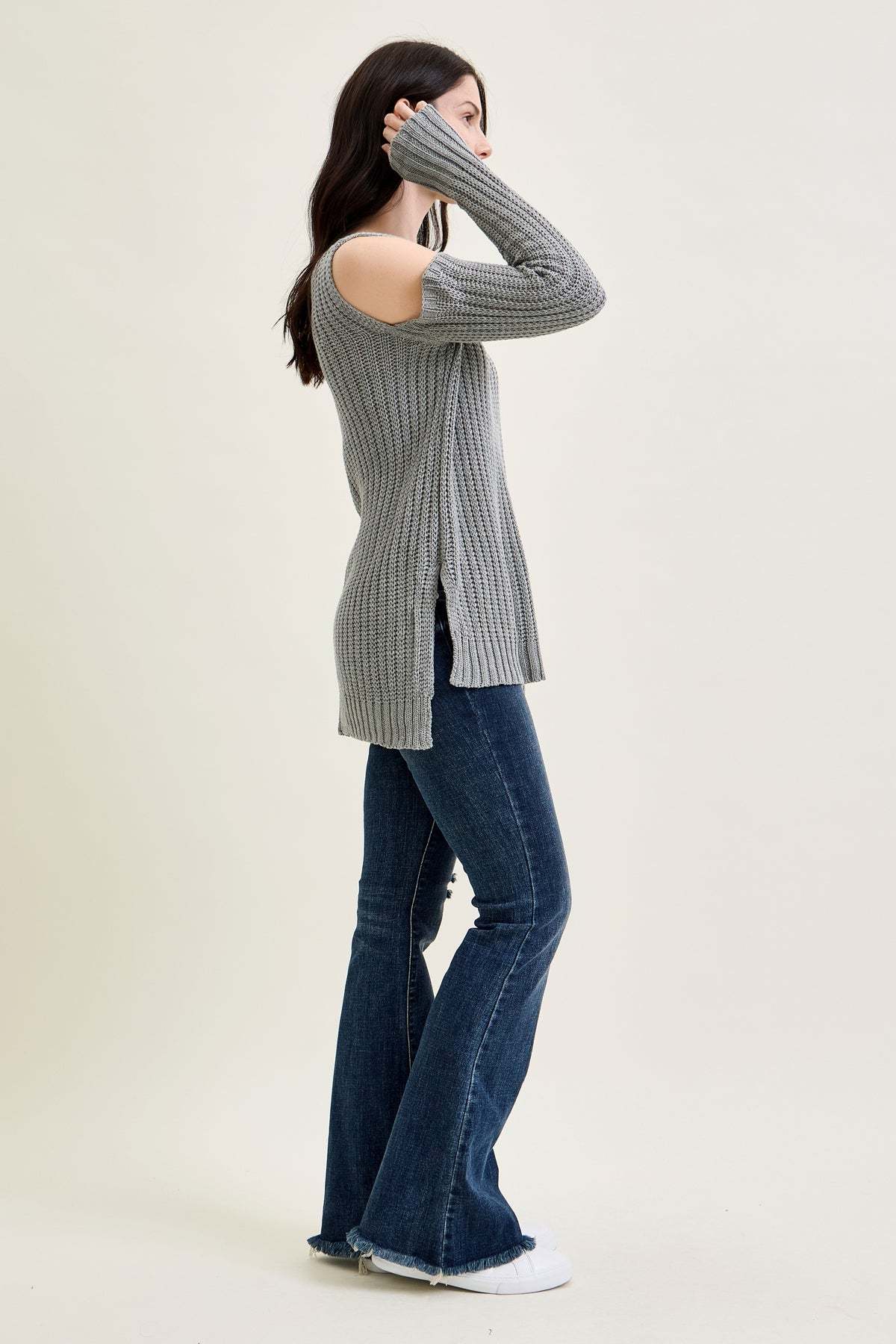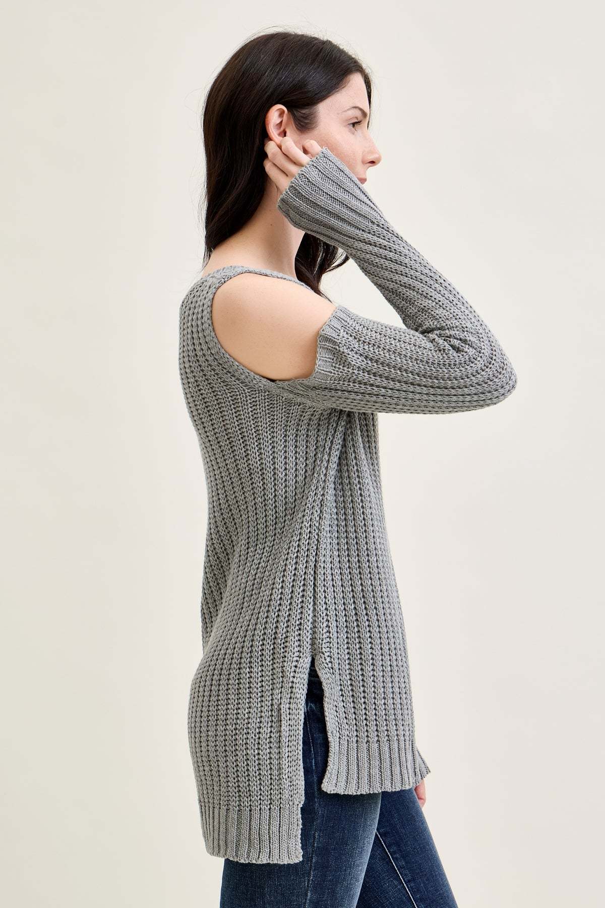 Effortlessly cool and comfy, this cold-shoulder pullover brings just the right amount of edge.