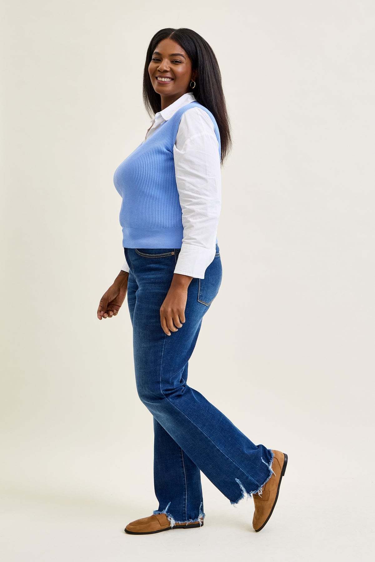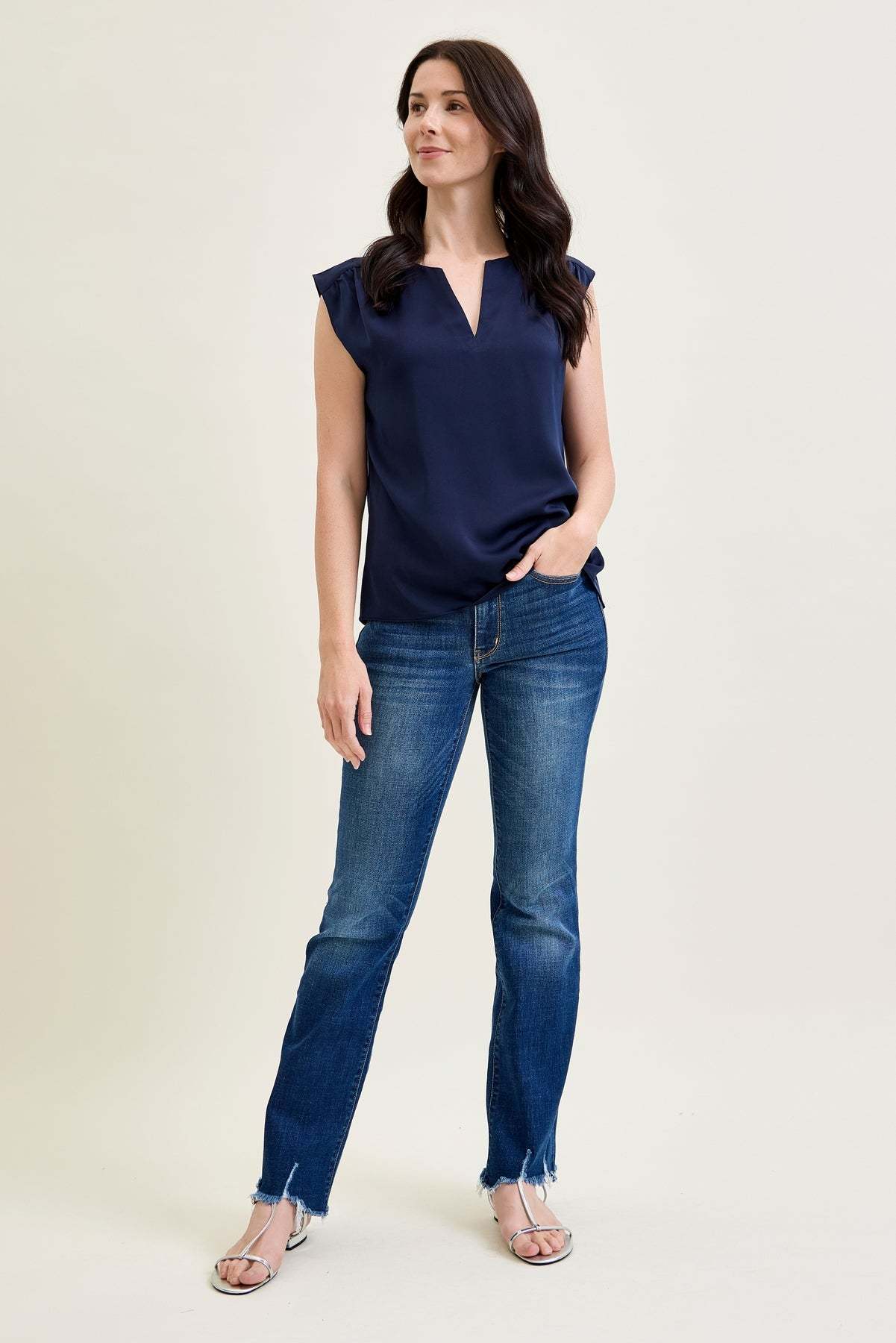 - Sleek Non-Distressed Hem: Clean, non-distressed hem provides a polished and sophisticated look.