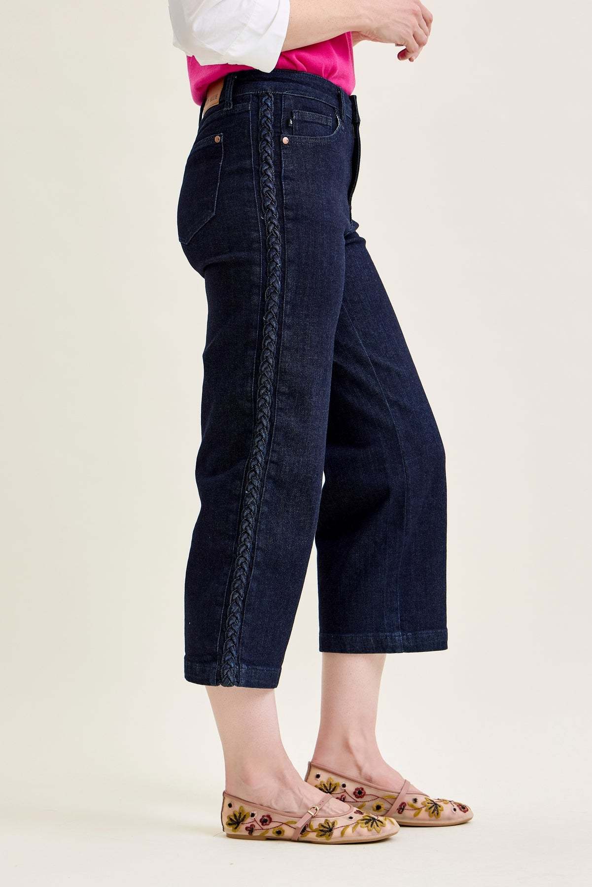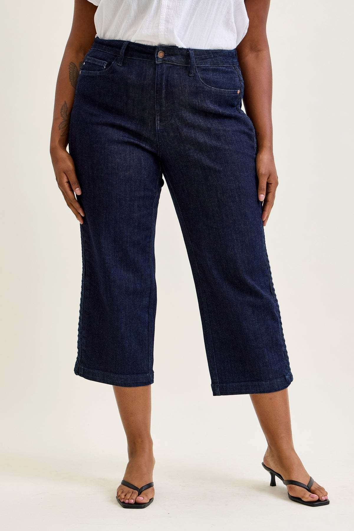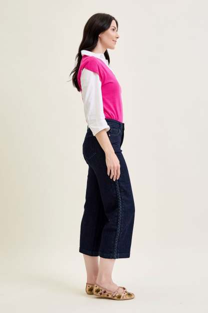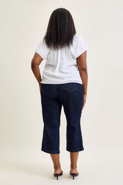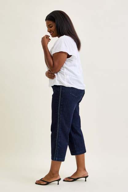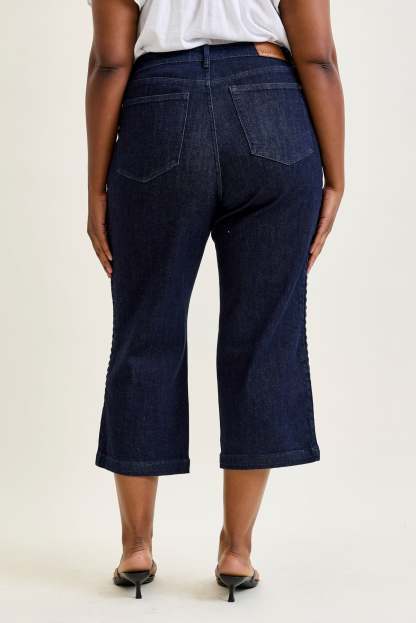 Dottie Side Seam Braid Cropped Wide Leg Jeans - PLUS