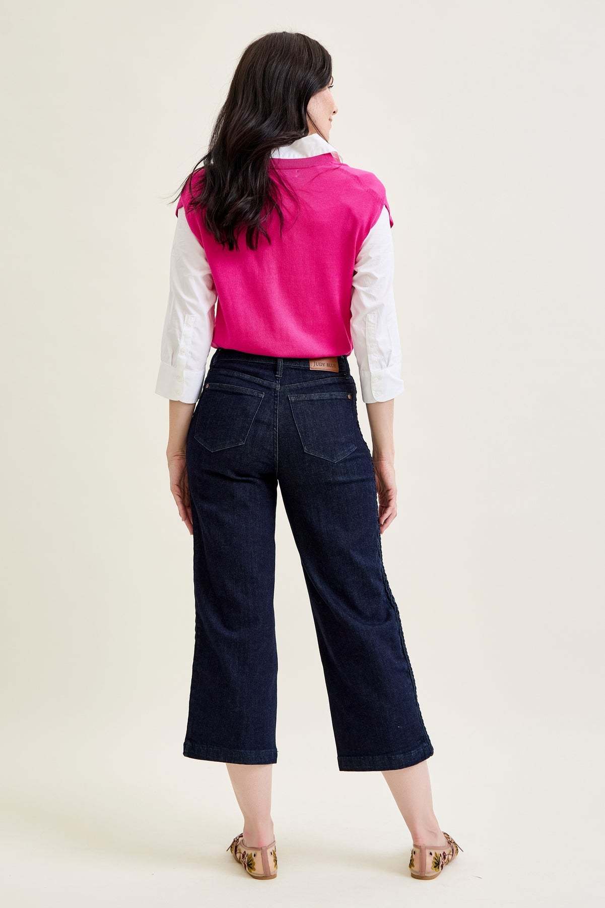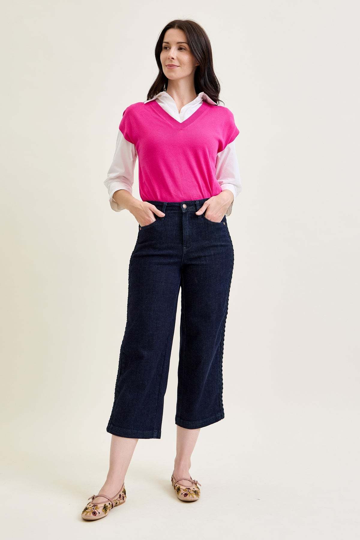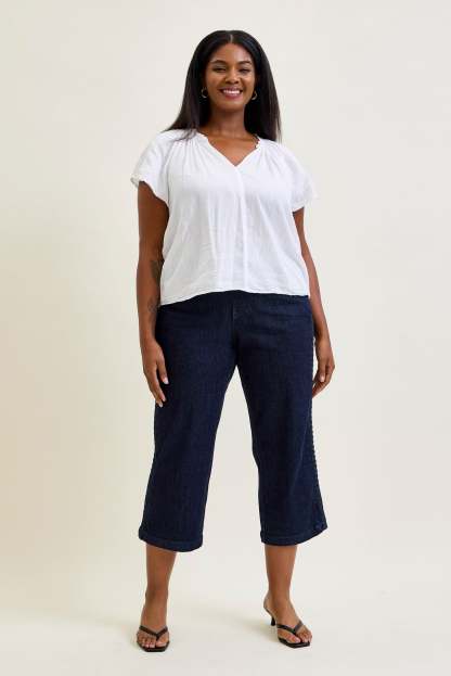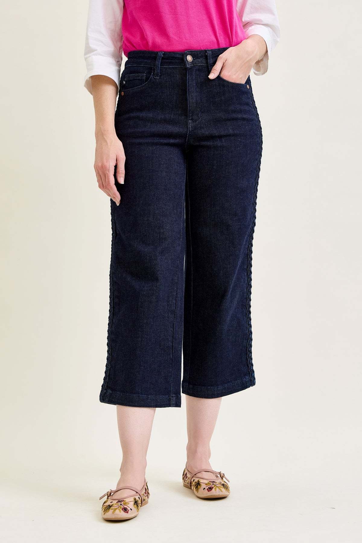 Dottie Side Seam Braid Cropped Wide Leg Jeans - PLUS