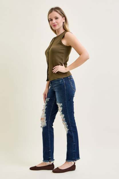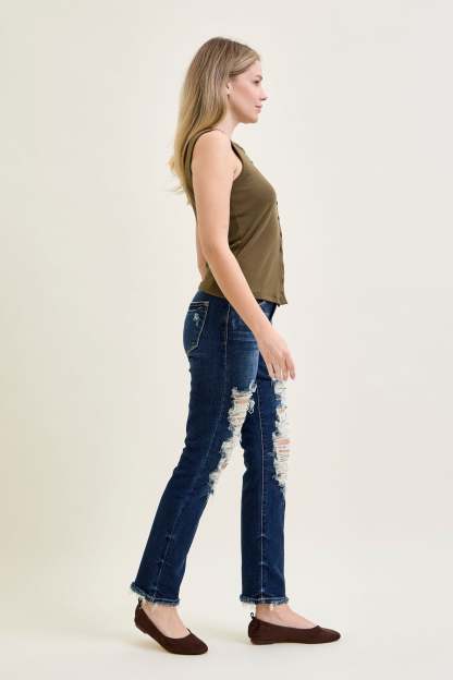 Lisse Mid Rise Ripped Straight Fit Jeans
