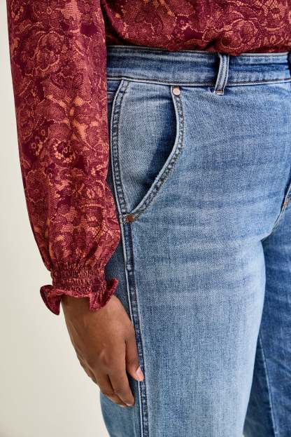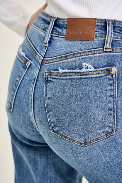 - High rise fit with a rise measurement of 12 1/4 inches for a flattering silhouette