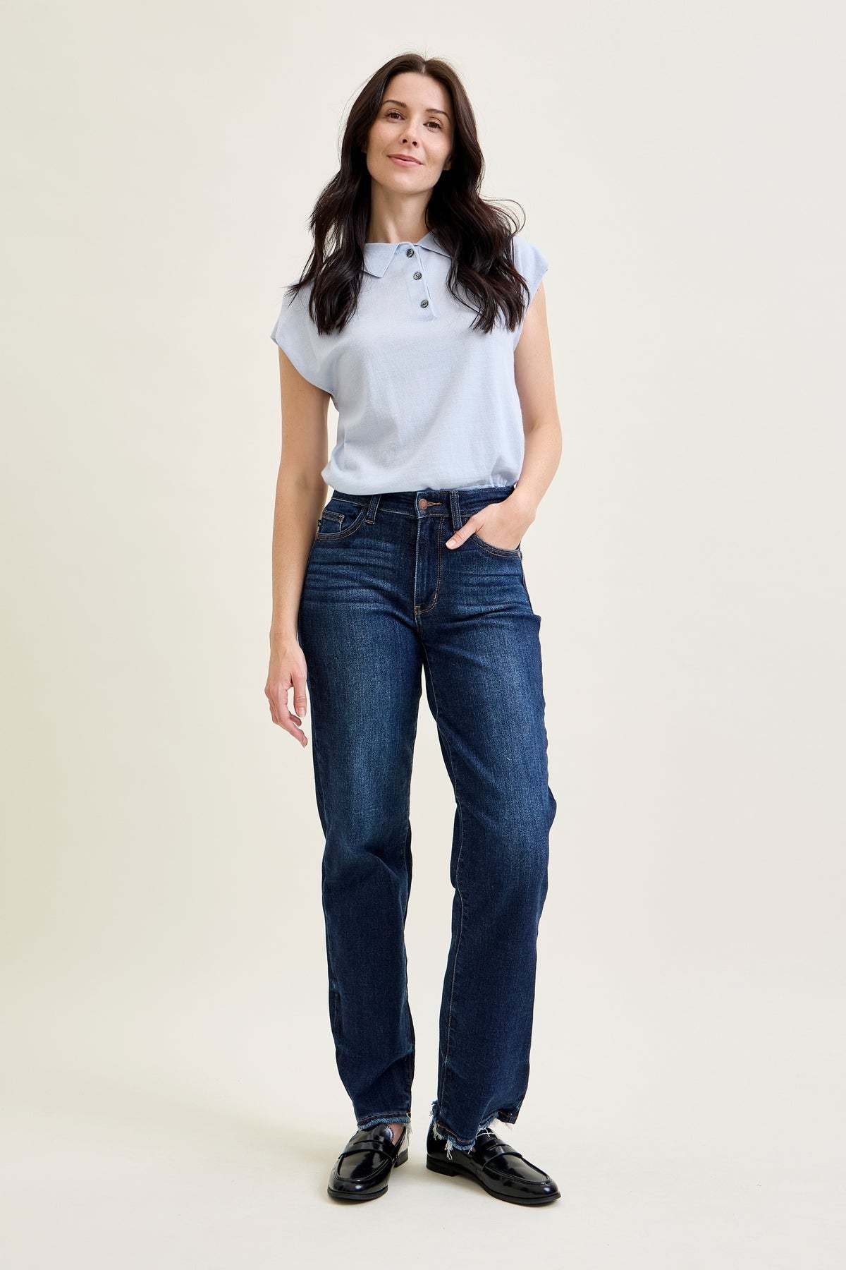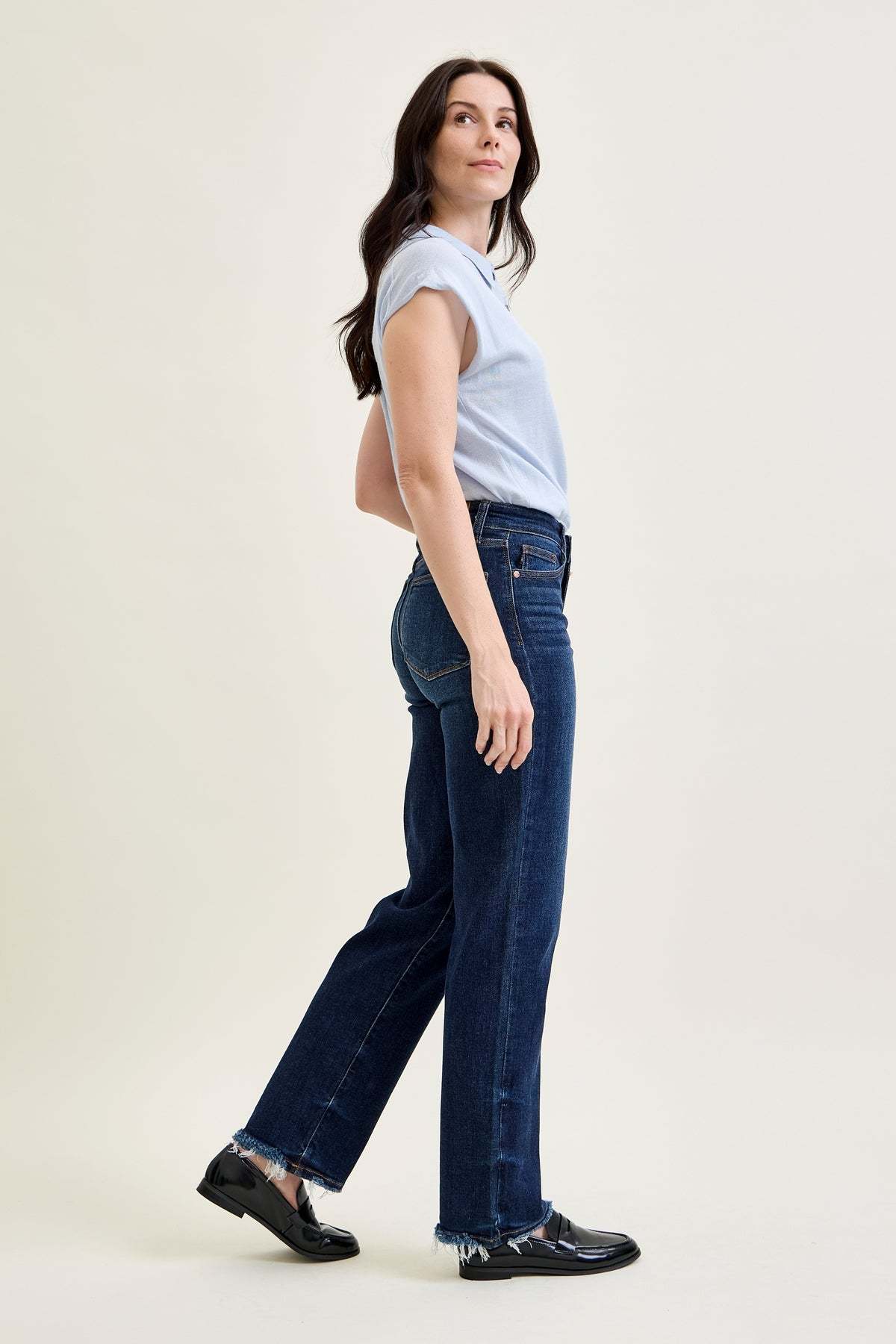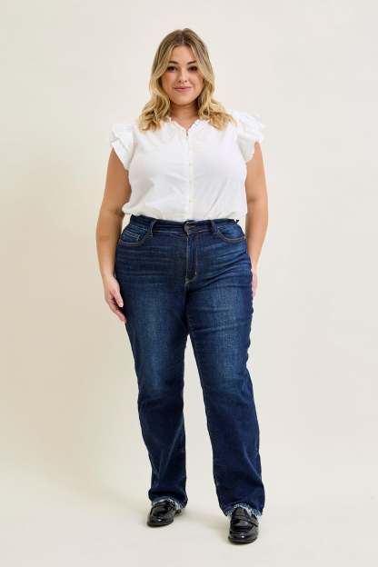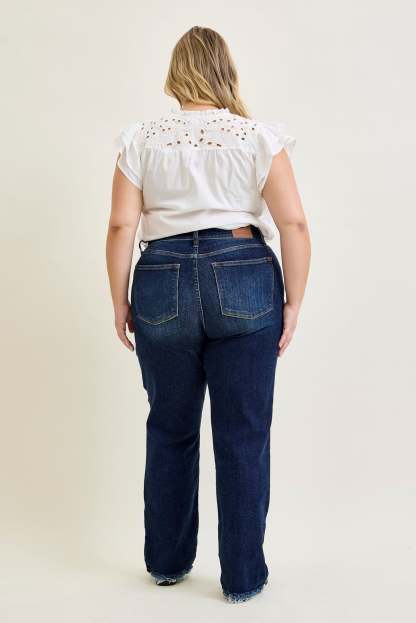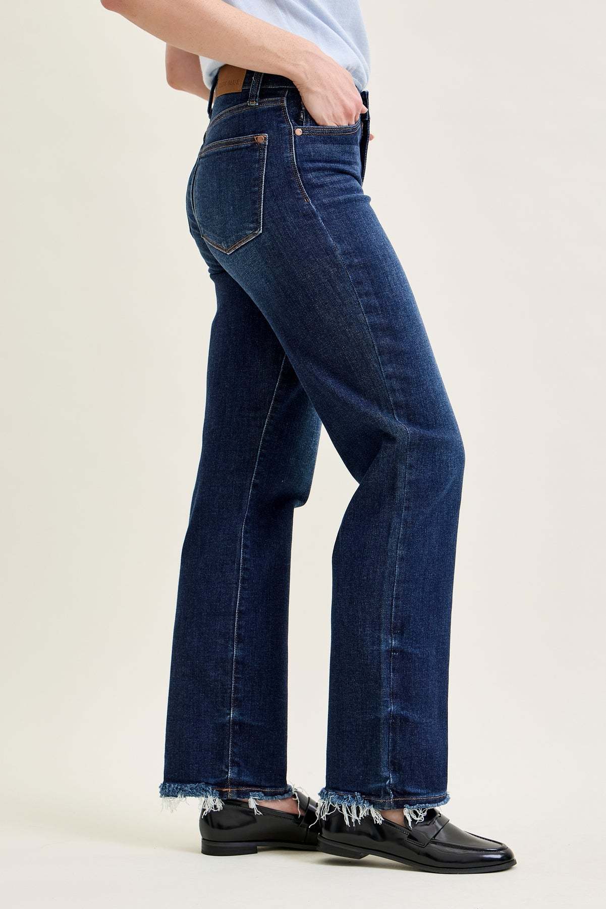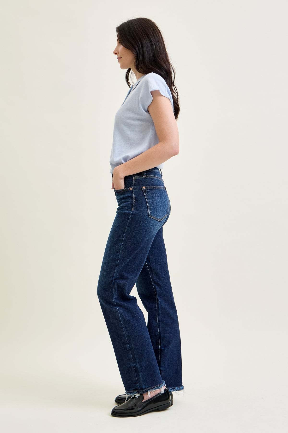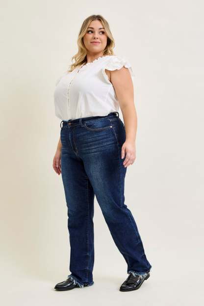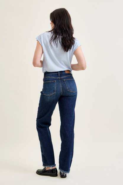 Selena Mid Rise Straight Leg with Fray Hem