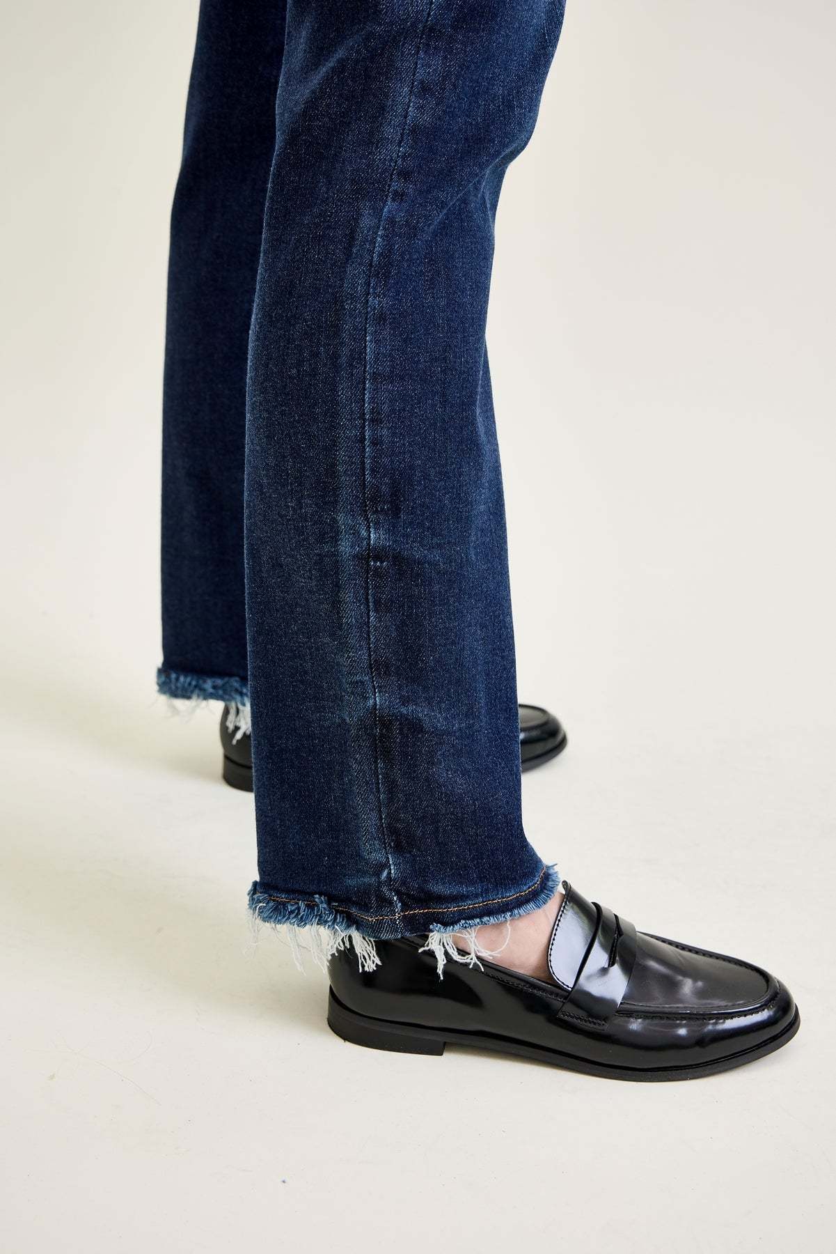 - Frayed hem adds a subtle edge, giving these jeans a lived-in, laid-back feel.
