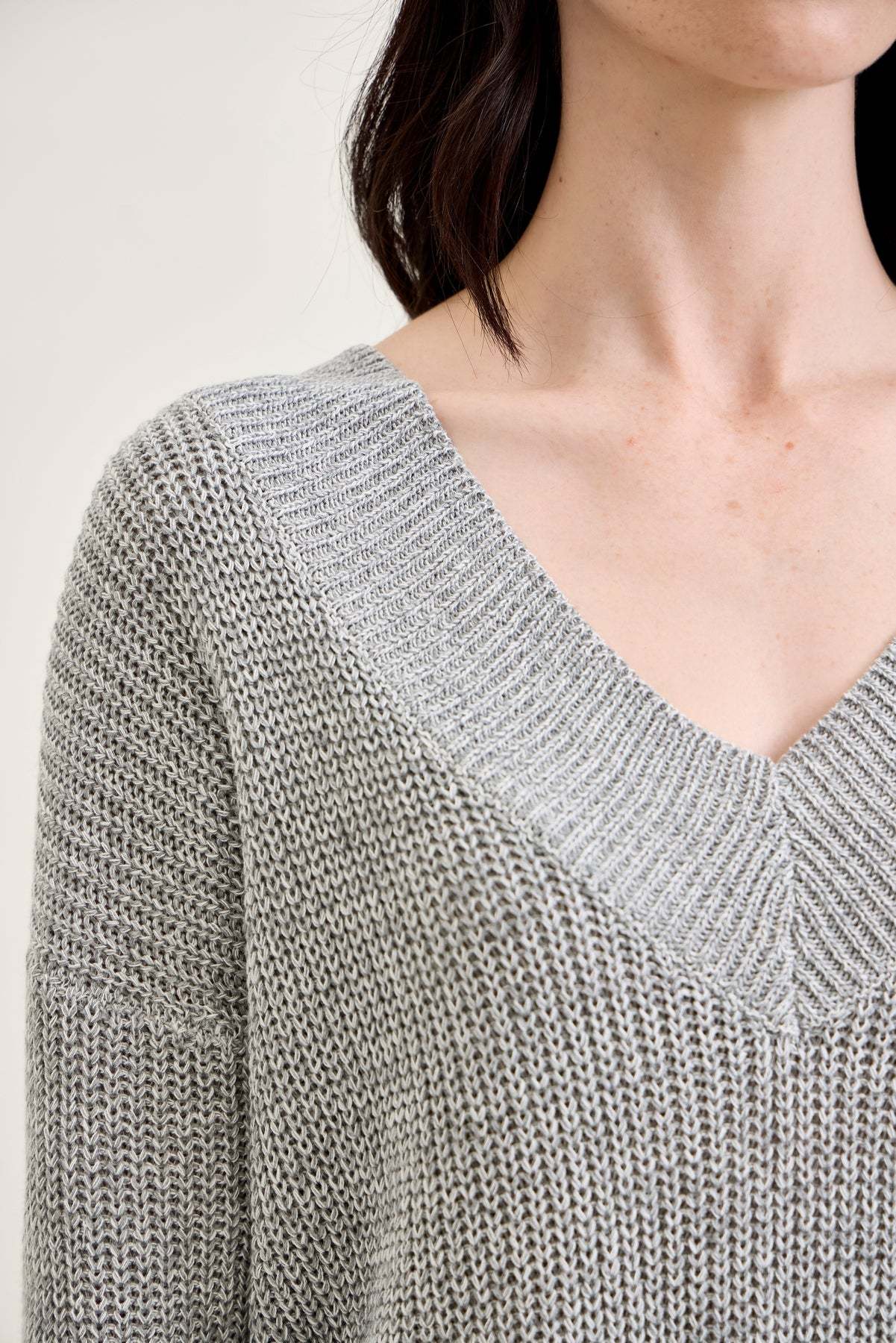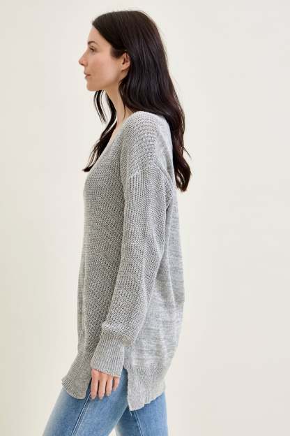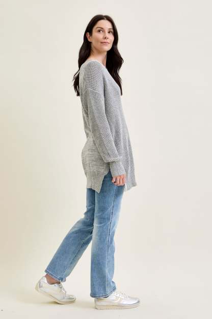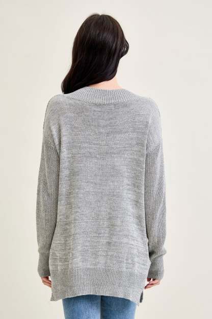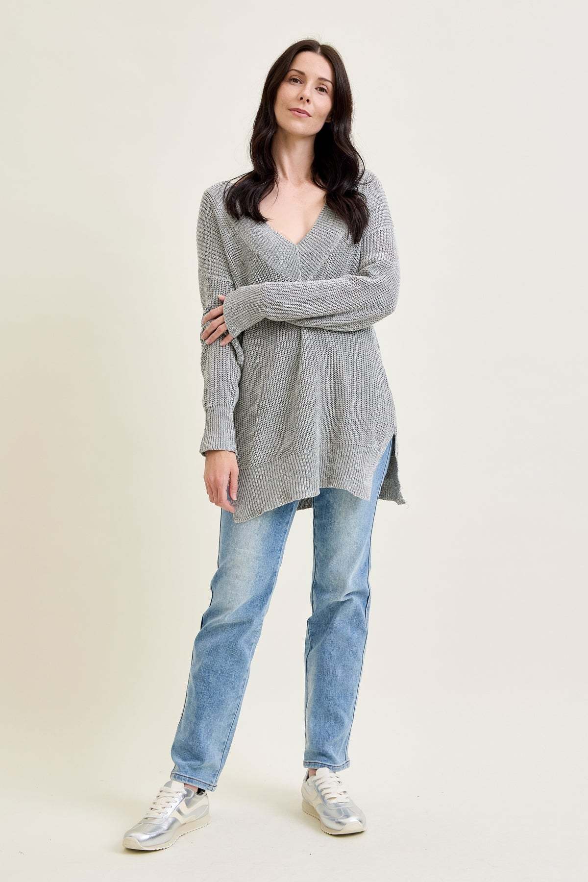 Slouchy V-Neck Off Shoulder Grey Sweater