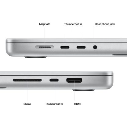 - CONNECT WHAT YOU WANT — MacBook Pro features a MagSafe charging port, three Thunderbolt 4 ports, an SDXC card slot, an HDMI port, and a headphone jack. And enjoy seamless wireless connectivity with Wi-Fi 6E and Bluetooth 5.3.