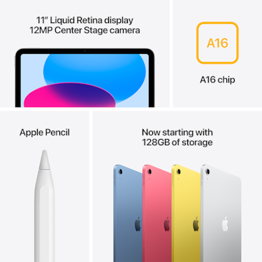 Now with the superfast A16 chip and 128GB of starting storage, iPad is more capable than ever. Get things done, express yourself, and stay immersed in your favorite activities, all on a stunning 11-inch Liquid Retina display.1 And using essential accessories designed just for iPad, you can add even more versatility for the things you do every day.